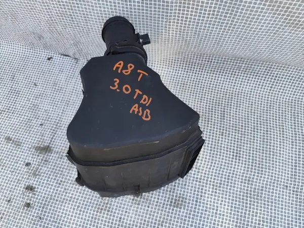 Käytetty ilmansuodattimen kotelo AUDI A8 D3 3.0 TDI, OEM 4E0129620E. Tämä alkuperäinen osa on erittäin hyvässä kunnossa ja soveltuu uudelleen asennettavaksi, kuten kuvassa näkyy. Osa on yhteensopiva henkilöautoille ja siinä on dieselmoottori. Lasku voidaan myöntää.
