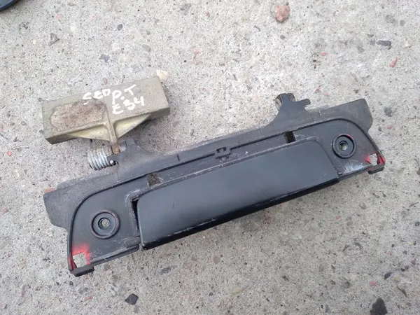 Ulompi takaluukun kahva oikealle puolelle, osanumero 1 928 207. Yhteensopiva BMW E34 pre-facelift. Kunto: Käytetty.