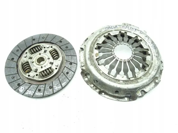 Kytkinpaketti, joka sisältää VALEO:n painelaakerin ja levyn. Kokonaisläpimitta on 200 mm ja levyn paksuus 7 mm. Osanumero: 8200187171 GBIMPORT. Sopii DACIA DUSTER (2010-2017) 1.6 16V bensiinimoottorille. Valmistusvuosi: 2012. Osa on täysin toimivassa kunnossa.