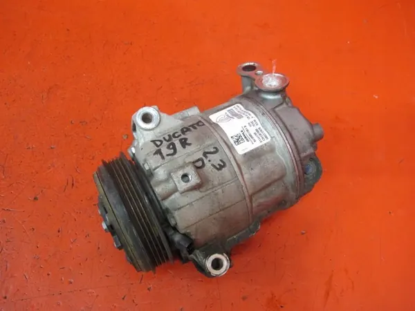 Ilmastointikompressori Fiat Ducatosta vuodelta 2019, jossa on 2.3L moottori (koodi F1AGL411D), joka tuottaa 129 HP (96 kW). Ajoneuvo on valmistettu vuonna 2014 ja sen ajokilometrit ovat 200 482 km. Siinä on manuaalivaihteisto ja valkoinen kori (maalikoodi 549 BIANCO MONOCOAT HWB). Ohjaus on vasemmalla puolella.