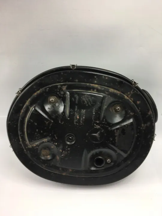 Ilmansuodattimen kotelo Mercedes W124 Sedanille, C124 Coupe ja S124 Kombille M103-bensiinimoottoreilla (mallit 300E, 300CE, 300TE). Kiinnitys on vaurioitunut kuvissa näkyvällä tavalla. OEM-osanumero 0130947202, 0020948704. Kunto kuvien mukainen.