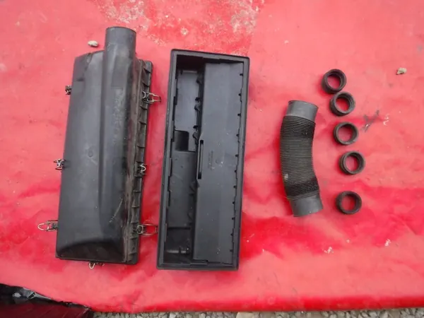Tarjolla on ilmansuodattimen kotelo Mercedes W124 300D 3.0D. Tämä on käytetty osa, myydään kuvien mukaisesti. OEM-osanumerot ovat 6030942103 ja 6020940204. ALV-lasku voidaan antaa.
