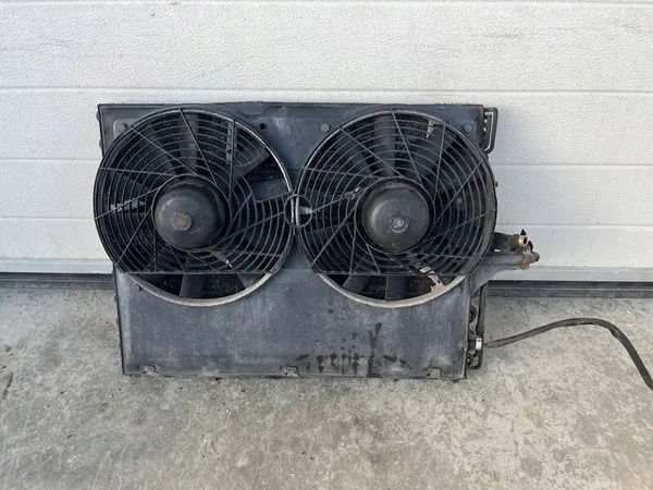 Ilmastointijäähdyttimen tuulettimet Mercedes W124 Sedan, C124 Coupe, S124 Kombi ja A124 Cabriolet M103- ja M104-moottoreilla. Yhteensopiva mallien 260E, 260TE, 300E, 300CE, 300TE, 300E-24, 300CE-24, 300TE-24, E280, 280E, 280TE, 320E, E320, 320CE ja 320TE kanssa. Vain yksi tuuletin on toiminnassa. Myyntiin sisältyy ilmastointijäähdytin bonuksena, mutta sen kunto on tuntematon.