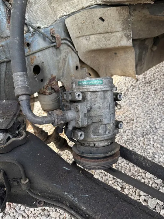 Alkuperäinen ilmastointikompressori Mercedes W126 2.8 autosta, jonka kilometrimäärä on alle 150 000 km. Mallivuosi: W126 MK1. Kunto: hyvä ja toimiva.