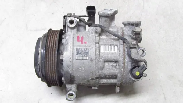 Käytetty ilmastointikompressori Mercedes-Benz E W213, 2.0L moottori, 2017 malli. Osa on peräisin purkamisesta, ja sen kunto on tarkasti esitetty kuvassa. OEM-osanumero: A0008301301. Kompressorin ID on 6SAS14C. Osa on alkuperäistä laatua valmistajan logolla (OE).