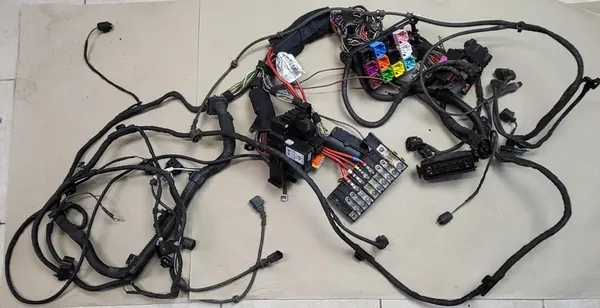 Alkuperäinen johdotus asennus kuten kuvissa VW Multivan T5 Lift 2015, 2.0 Bi TDI. Osanumero: 7E0927903, 7E0907160C. Täysin toimiva, poistettu ajoneuvosta. Erittäin hyvässä kunnossa, yksi pieni vaurioitunut liitin.