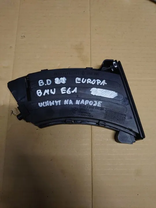 Käytetty BMW kuppiteline E61:lle, osanumero 51457063167. Tämä alkuperäinen varusteosa (OEM) on suunniteltu henkilöautoille ja sijaitsee vasemmalla etupuolella. Se on hyvässä kunnossa ja toimitetaan arvonlisäverolaskun kanssa. Tuote painaa 1 kg ja on eurooppalainen versio.