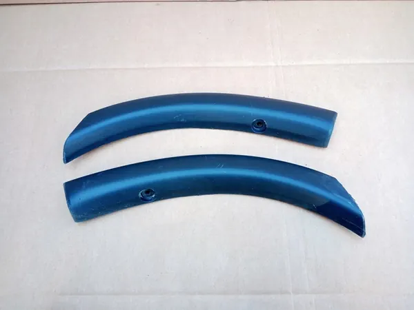 Tämä ilmoitus on täydellinen takapuskurin reunussetti Mitsubishi Outlanderille vuodelta 2014. Vasemman puolen reunus on osanumero 7407A317 ja oikean puolen reunus on 7407A318. Alkuperäisiä käytön merkkejä on näkyvissä kuvassa numero 2, ja yksi kiinnityskohta on vaurioitunut, kuten kuvassa numero 5 on esitetty. Muut reunukset ovat ehjiä. Kohteen kunto on esitetty liitetyissä kuvissa.