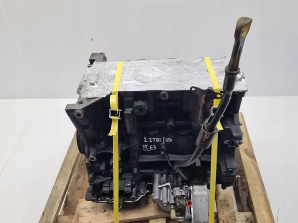 Moottorilohko Peugeot Boxerille ja Citroen Jumperille 2.2 HDI 120HV 4HU. Tämä käytetty moottorilohko sisältää kampiakselin, männät, kiertokanget ja öljypohjan, kuten kuvissa näkyy. Moottorilohko on erittäin hyvässä kunnossa, ja se on peräisin ajoneuvosta, jossa oli vain vaurioitunut sylinterinkansi. Kampiakseli on tarkistettu ja se soveltuu edelleen käyttöön tai remontin pohjaksi.