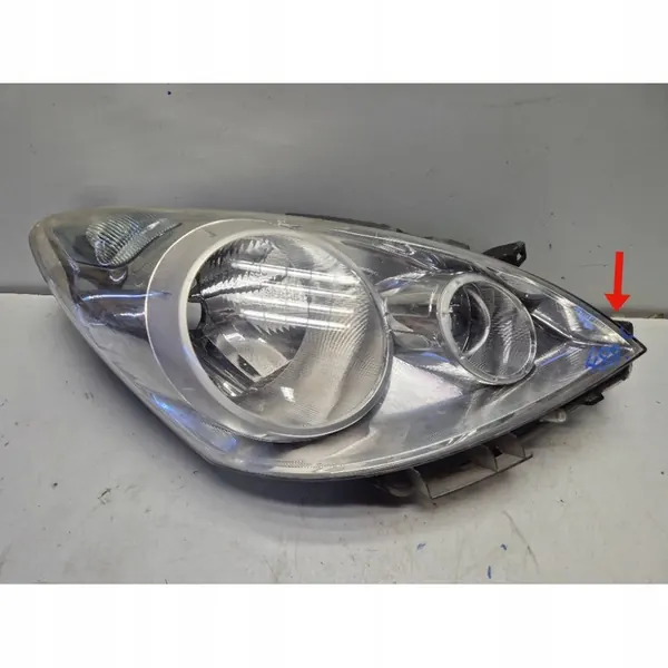 Oikea etuvalaisin Nissan Note (E11), OEM 26010BH10B. Kunto: käytetty, jossa vaurioitunut lasi, sisäiset tahrat ja rikki oleva kiinnitys. Katso kuvat lisätietoja varten.