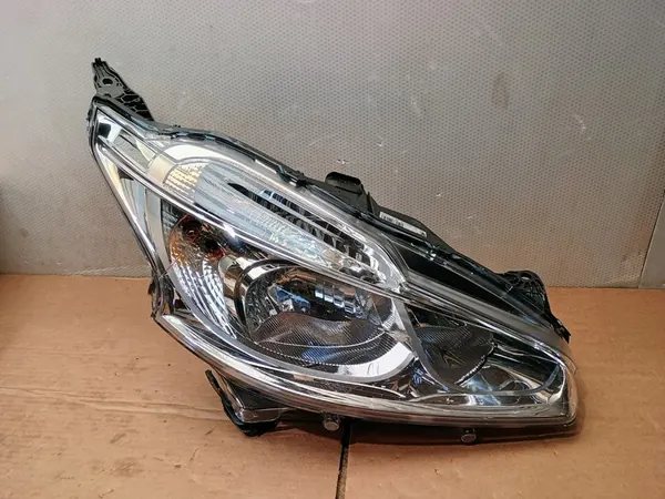 Alkuperäinen oikea etuvalo PEUGEOT 208 I, OEM 1685351480. Valo on käytetyssä kunnossa, kuten kuvissa näkyy, eikä sitä ole korjattu. Se sisältää perinteiset/halogeeniset kaukovalot ja sopii Euroopan versioihin henkilöautoista.