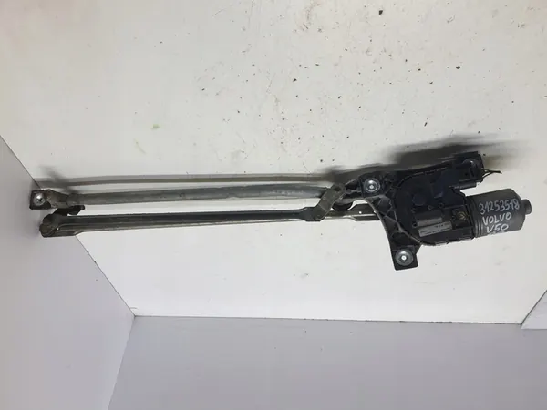 Käytetty pyyhkijämekanismi Volvo V50:lle, osanumero 31253518. Kuvissa näkyy osan todellinen kunto.
