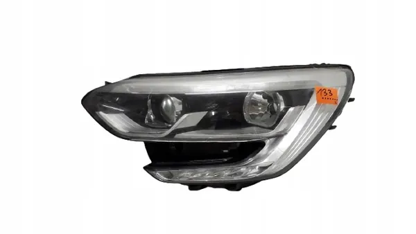 Vasemman ajovalon linssi RENAULT MEGANE 4 IV LED:llä, OEM-osanumero 260603157R. Ajovalo on käytetyssä kunnossa, jossa on näkyviä vaurioita: lasi on haljennut, kiinnikkeet ovat rikkoutuneet ja kotelo on vaurioitunut. Tämä osa myydään vain varaosina.