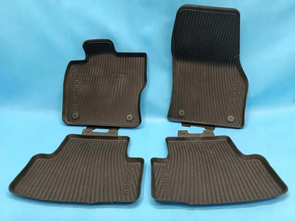 Alkuperäiset kumimatot SKODA KAROQ LIFT 2023, 1.5 TSI 110 kW, 6-vaihteinen manuaali. Täydellinen 4 osan setti. Tuote poistettu ajoneuvosta, jossa on 60 136 km ajettu. OEM-numerot: 57B061502, 57A061512. Kunto: Käytetty. Lasku saatavilla.