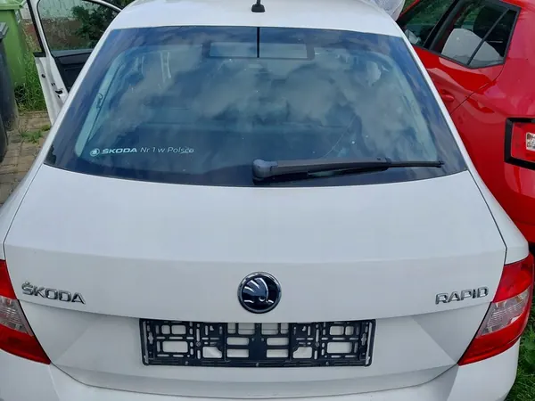 Takaluukku SKODA RAPID LIFTBACK LF9F:lle, mallivuosi 2012 ja myöhemmin. Käytetty kunto, pieniä korjauksia tarvitaan, kuten kuvissa näkyy.