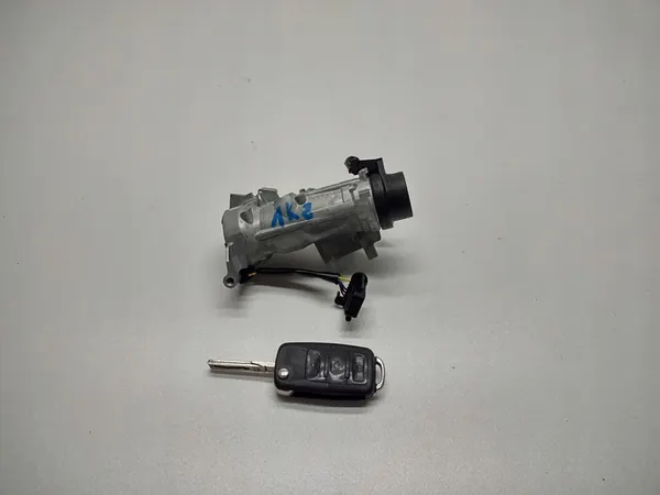 Alkuperäinen sytytyskytkin kaukosäätimellä VW Touran 1T, EOS, Scirocco, Golf V ja Jetta 1K5 (2004-2009). Sytytyskytkin on toimiva ja kaukosäädin näyttää käytön jälkiä.
