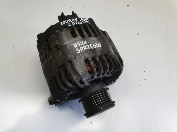 Käytetty vaihtovirtageneraattori VW Touran I 2.0 TDI - Diesel, valmistettu vuosina 2003–2015, moottorin tilavuus 1968cc. Osa numero 06F903023C. Vaihtovirtageneraattorissa on vaurioitunut kytkin. Tämä on alkuperäinen osa, jota on säilytetty puhtaassa ja lämpimässä varastossa laadun säilyttämiseksi. Se on peräisin laillisesta lähteestä, jossa on ostotodistus.