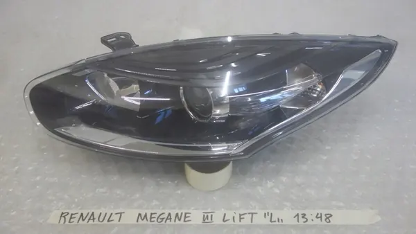Vasen ajovalo Renault Megane III Lift 13-. Tämä on alkuperäinen eurooppalainen osa käytettynä, jossa on korjattu kiinnitys. Se käyttää perinteisiä halogeenivaloja ja sopii henkilöautoille. Osa on merkitty OEM-numerolla 260609865R.