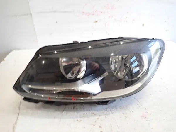 Käytetty vasen etuvalaisin VW TOURAN 2010-2015, jossa on vaurioitunut linssi. Kunto näkyy alla olevissa kuvissa.