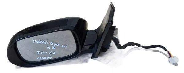 Täydellinen vasen peili HONDA CIVIC VII LIFT:lle kuten kuvassa. Siinä on 7 pinnin liitin ja se on musta. Tämä on eurooppalainen versio. Osa on käytetty mutta toimiva, poistettu onnettomuudettomasta ajoneuvosta. Se sisältää lämmityksen, sillä on maalattu pinta ja se toimii sähköisesti. Sopii henkilöautoille.