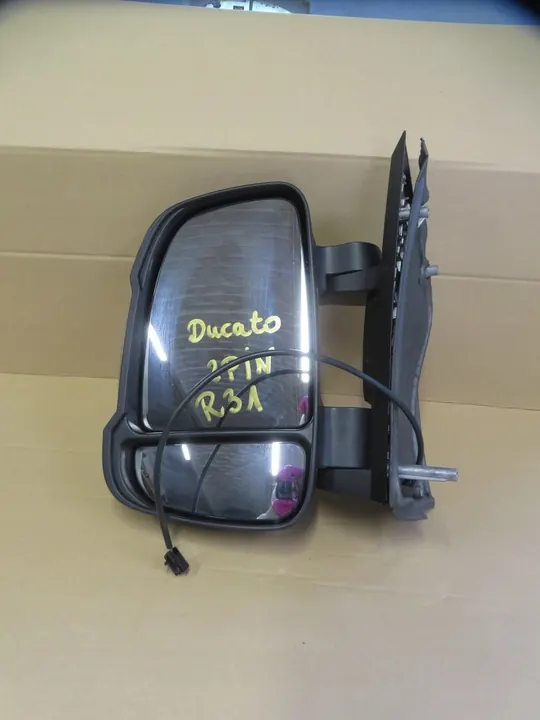 Vasen sähkölämmitetty peili Ducatolle. Tämä käytetty osa on hyvässä kunnossa, ja siinä on pieniä naarmuja kotelossa. Peili on musta ja toimii sähköisesti. Se on varaosa, jonka laatu on verrattavissa alkuperäiseen. Tarkista kuvat mahdollisten virheiden varalta ennen ostamista.