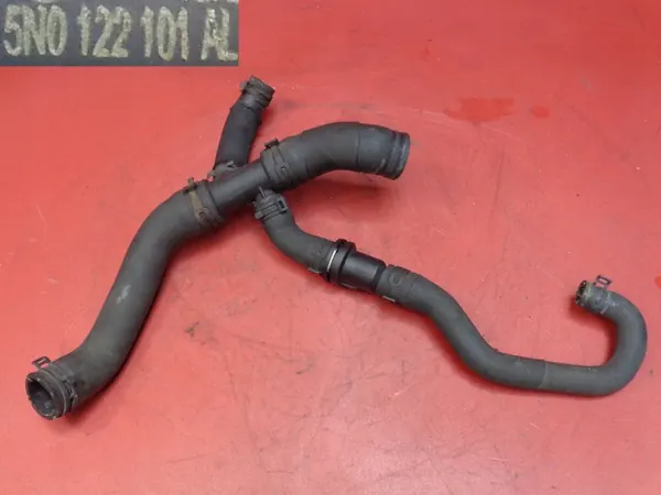 Vesiputket, joissa on keräysputki, T-liitin ja takaiskuventtiili Audi Q3, VW Passat, Seat Alhambra ja Skoda Superb 2.0 TDI. OEM-osanumeroita ovat: vesiputket: 5N0121086D, T-liitin: 7N0121087, takaiskuventtiili: 1K0121113A. Tämä osa on peräisin CFG-moottorista, vuosi 2012. Käytetty.
