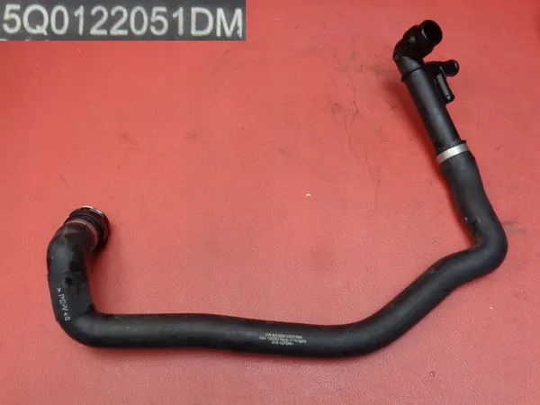 Vesiputki liittimellä VW Passatille ja Skoda Superbille 2.0 TDI. OEM-osanumerot: vesiputki 5Q0122051DM, liitin 5Q0121619D, moottorille DFE vuodelta 2015.