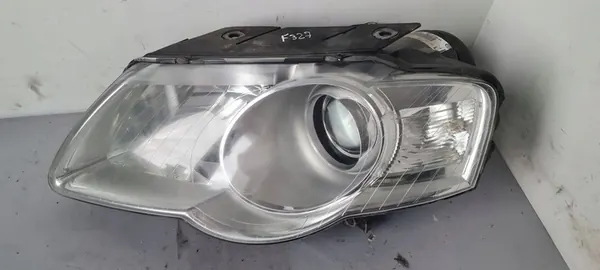 Vasemman puolen ajovalo Volkswagen Passat B6:lle (2005 - 2010), OEM-osanumero 3C0941005AA. Tämä on käytetty osa, jonka kunto on kuvissa näkyvä. Se on suunniteltu asennettavaksi vasemmalle puolelle eurooppalaisissa malleissa. Osa on valmistettu Volkswagen OE:ltä ja se sopii henkilöautoihin.