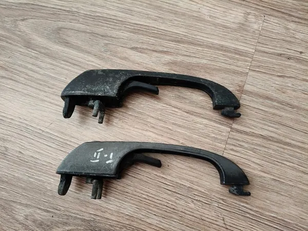 Ulko-oven kahva etu oikealle puolelle ja liukuoviin. Alkuperäiset kahvat, joissa liukuoven kahva näyttää vaurioita kuvissa esitettyjen mukaan. Myydään yksittäisenä osana.