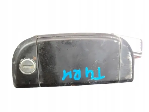 Oikea takakahva VW Transporter T4:lle, OEM-osanumero 701837210. Tämä musta kahva sisältää lukitusmekanismin ja siinä on jonkin verran maalivaurioita. Se on käytetty. Katso kuvaus ja kuvat lisätietoja varten.